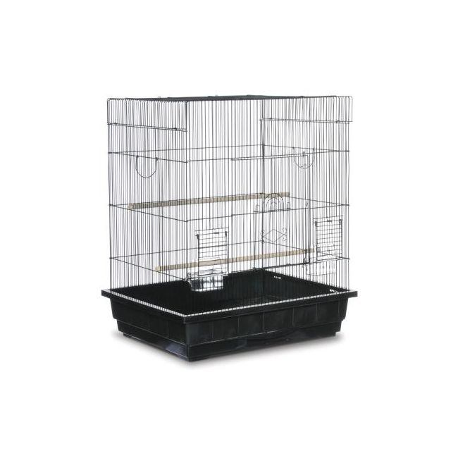 Prevue Pet Products Square Top Parakeet bird cage in Black SP25212B/B is ideal for parakeets, cockatiels, lovebirds & other similar sized birds.This spacious Parakeet bird cage includes a bottom grille with pull out plastic bottom tray for ease of cleaning, plus two wood perches (1/2 Inch diameter) and two plastic hooded cups. Cage measures 25 Inch Long, 21 Inch Wide, 29 1/2 Inch High with 1/2 Inch wire spacing.